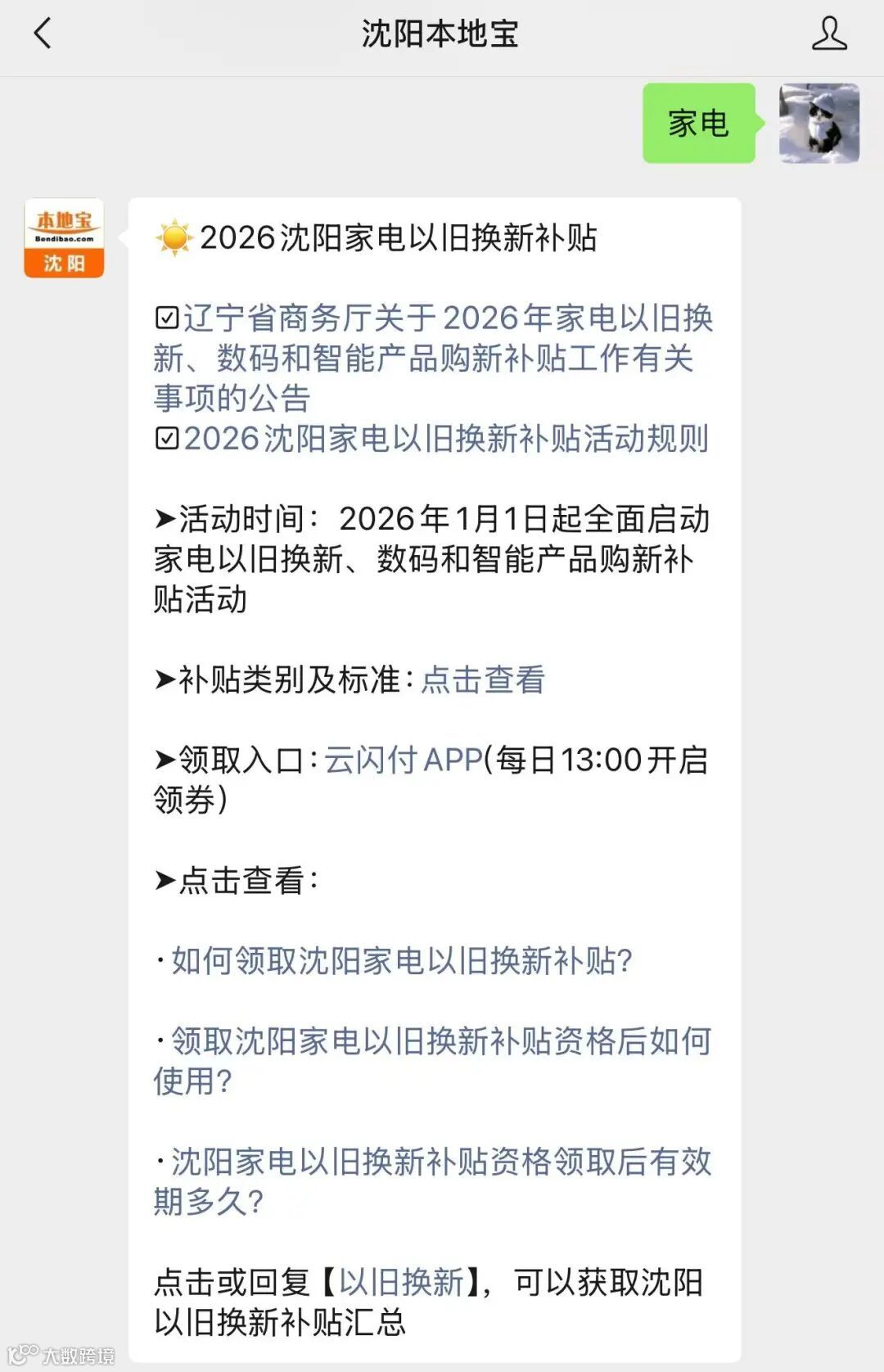 回复【以旧换新】获取沈阳以旧换新活动信息