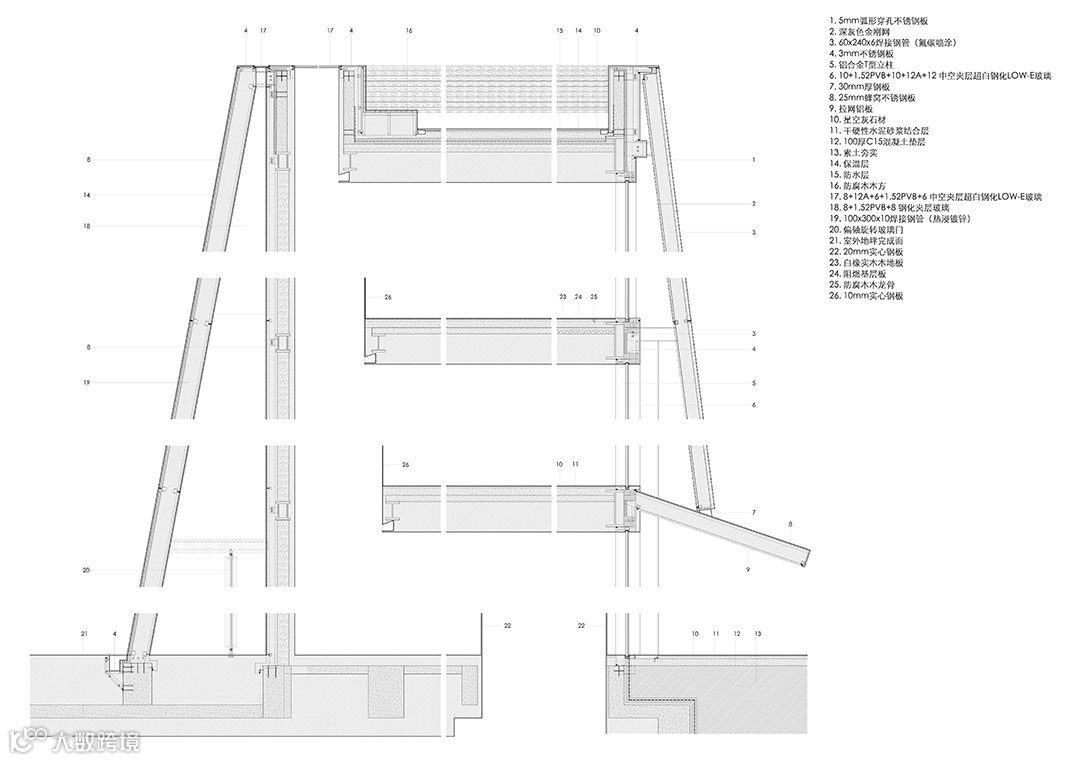 材料:不锈钢、上海安美特阳极氧化铝板、迈饰新材料铝拉网、星空灰石材、德利丰岩板、BEEYE彼易极窄门窗