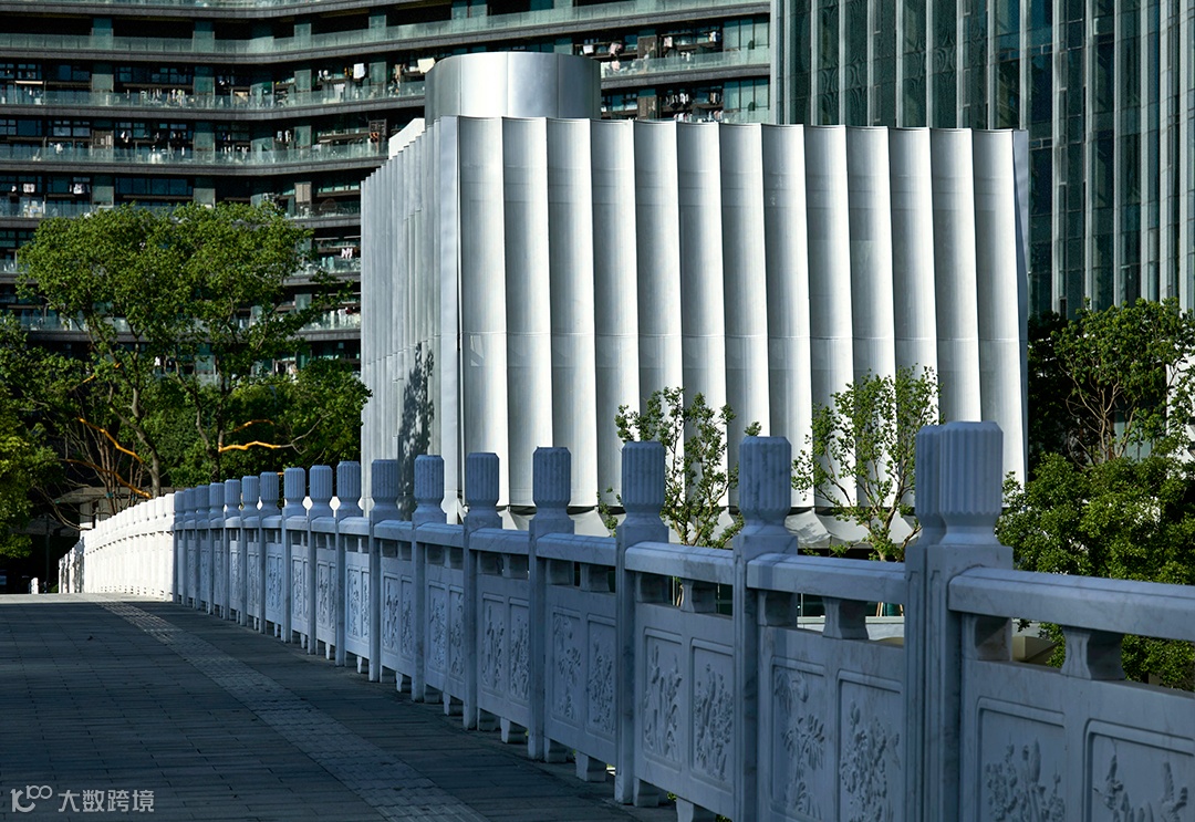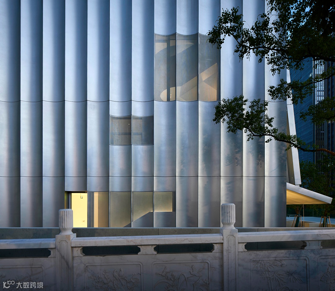 不锈钢材料的选择具有时代性,其工艺特征契合当今的加工便利性。材料本身的光泽与冲孔设计带来的光线丰富变化,既契合当代的精神需求,也是为了更好地融入日益快节奏的现代城市。