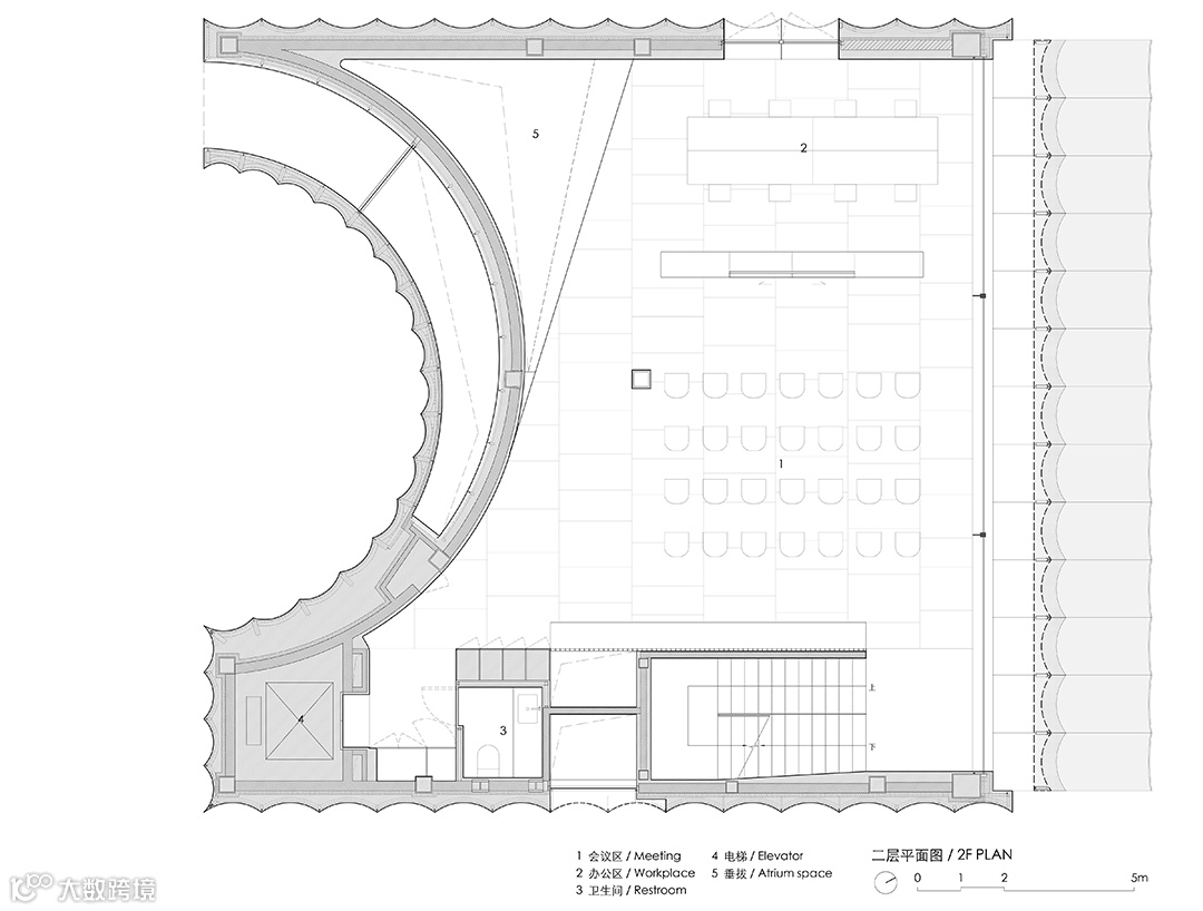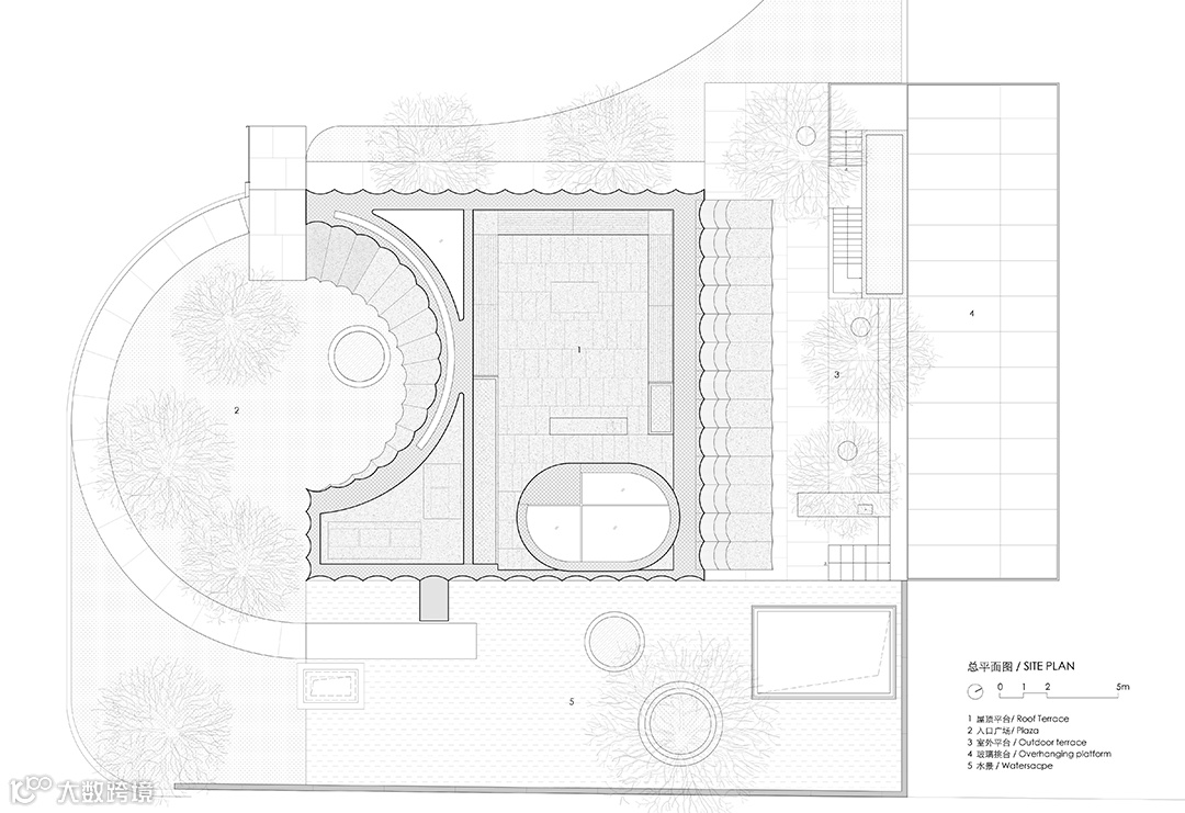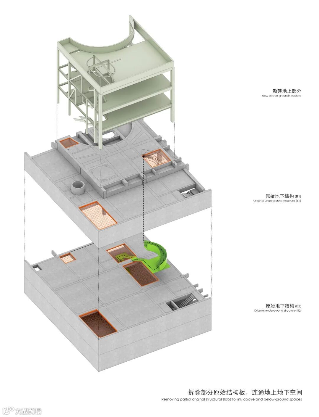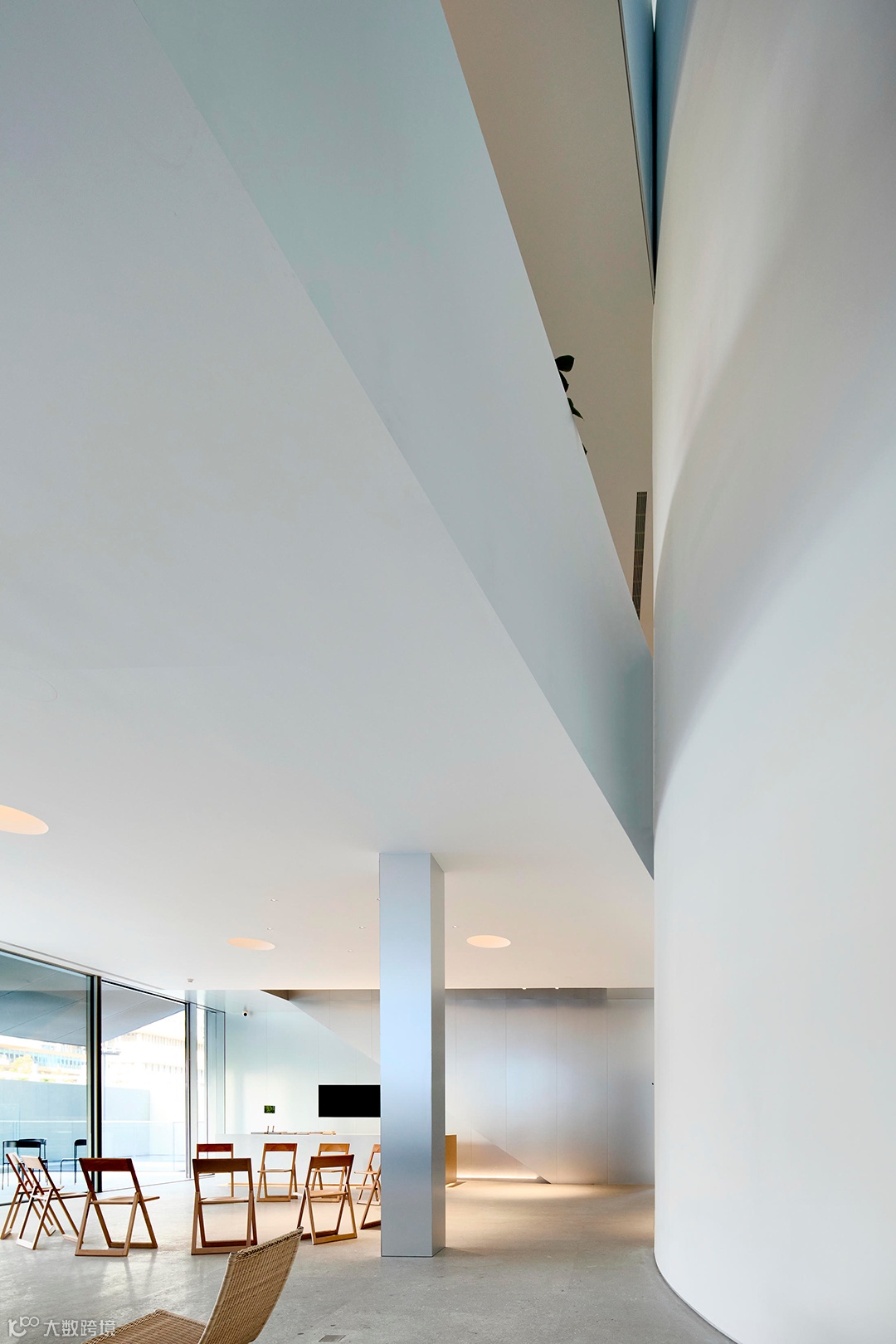 但建筑的基本外形需遵循原有审批的规划要求,即一个被正圆柱体切削的立方体,同时必须顺应已施工完成的地下结构。这些既定条件也成为了新设计的核心切入点,显然这如同一个命题作文。
