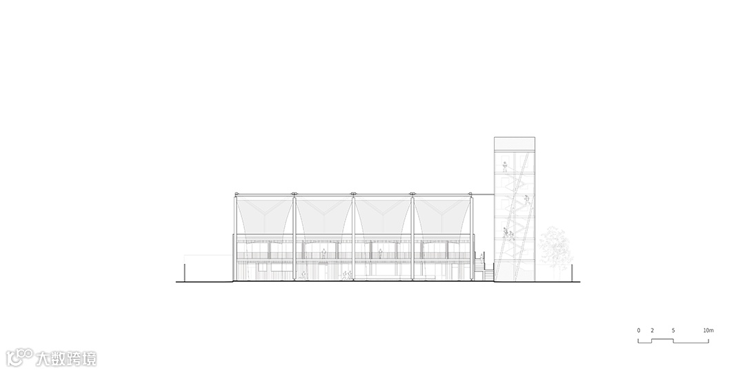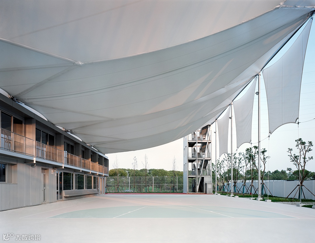 △ 篮球场的膜结构顶棚挡雨,侧面半透膜遮挡南向的直射光 ©陈颢