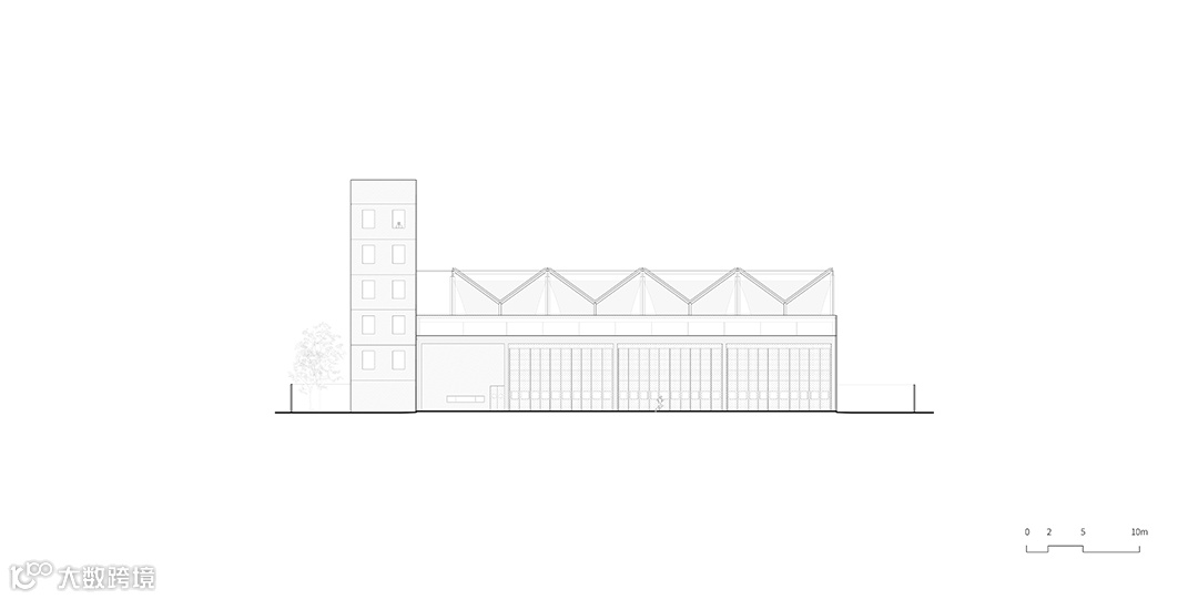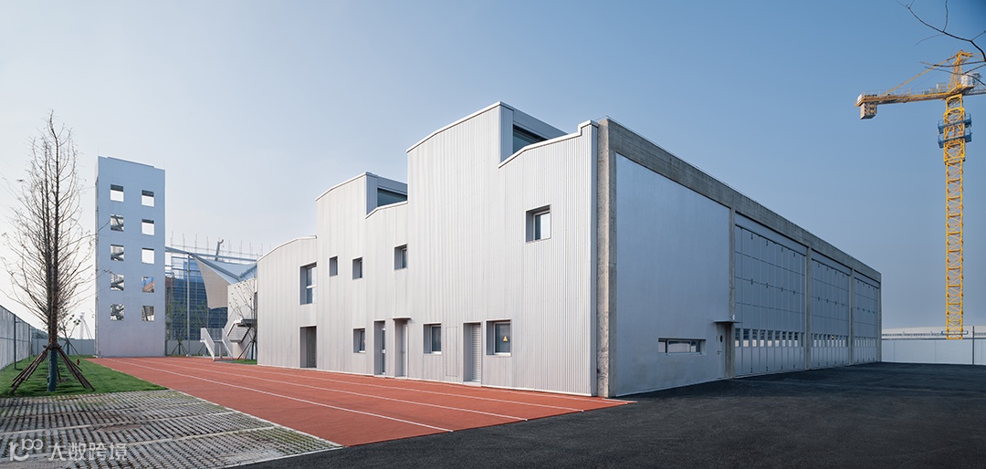 △ 消防站的主楼、训练塔,以及由主楼和训练塔共同支撑起的篮球场顶棚 ©陈颢