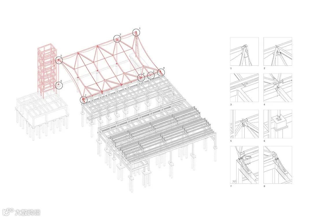 △ 篮球场顶棚结构关系示意图 ©亘建筑