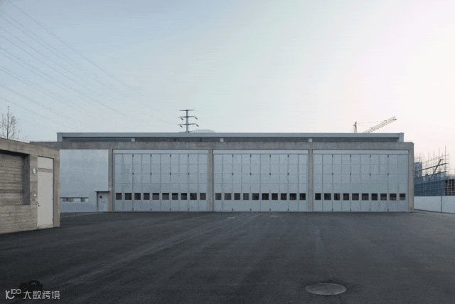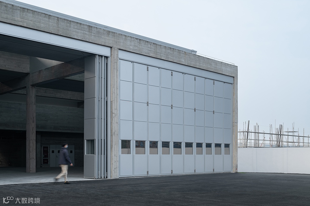 △ 金属折叠门和混凝土框架构成的车库外立面 ©陈颢