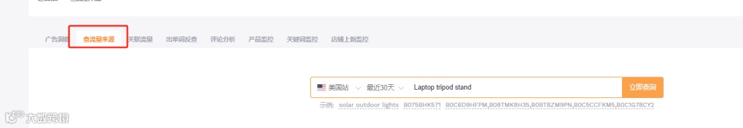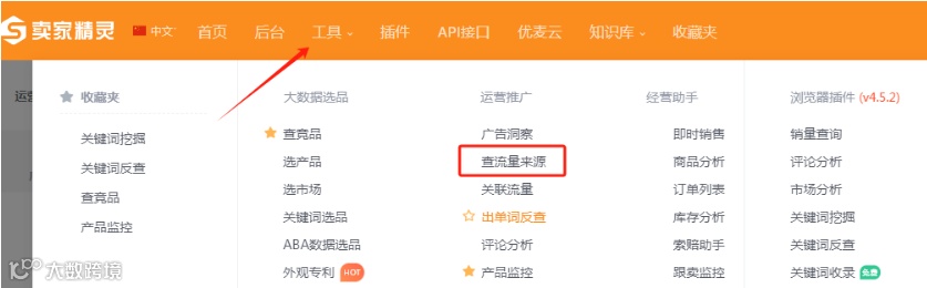 步骤1:进入卖家精灵网页版,点击“工具”,然后选择“查流量来源”。