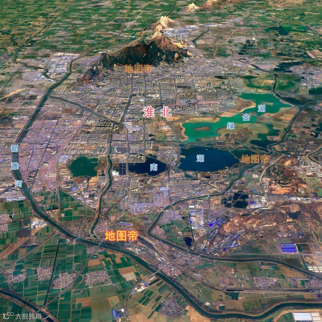 淮北市区大致为新濉河、乾隆湖、南湖、绿金湖围成,城区海拔30-70米,市中心纬度是北纬33°57′23″。