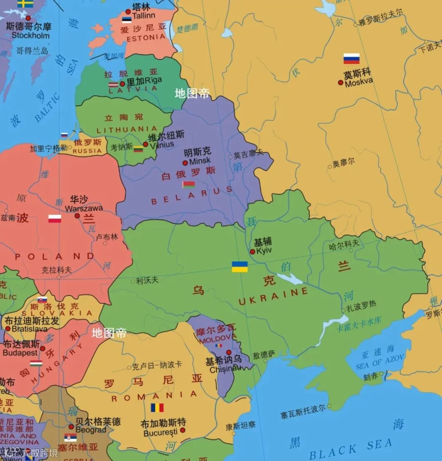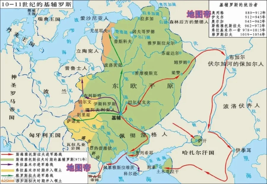 基辅罗斯先后与东边蒙古金帐汗国、南边奥斯曼土耳其、西边西斯拉夫波兰、北边立陶宛大公国交战,十足的四战之地。