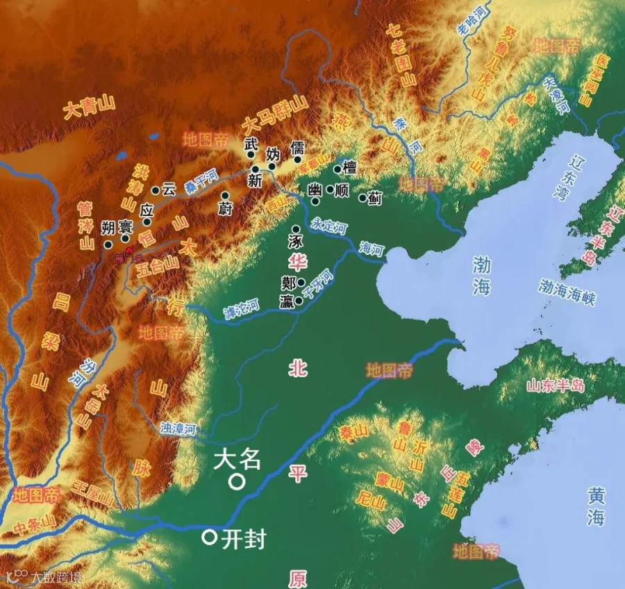 邯郸大名县地处华北平原南部,在冀鲁豫三省交界处,东邻山东冠县、莘县,南连河南南乐县,西交魏县、广平县,北接馆陶县。大名县处在漳河与黄河之间,漳河、卫河、马颊河自西南向东北贯穿全境,漳、卫河在县北汇流,京杭大运河在大名县东面不远,永济渠流经大名县。古代在一马平川的华北平原上,最好的自然防御条件就是河流,魏州(魏郡)是北方的军事重镇。