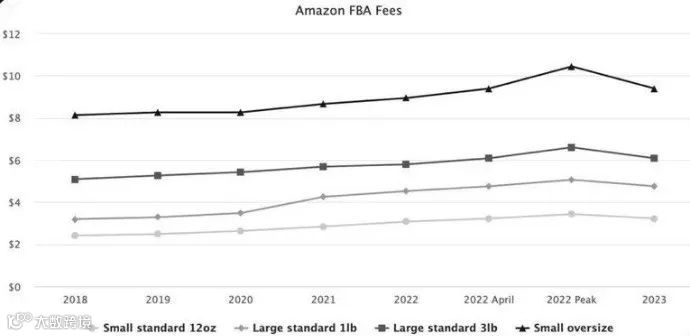 一方面,亚马逊会将部分运营费用转嫁到卖家身上,如FBA自2020年以来,费用陆续上涨了30% 。