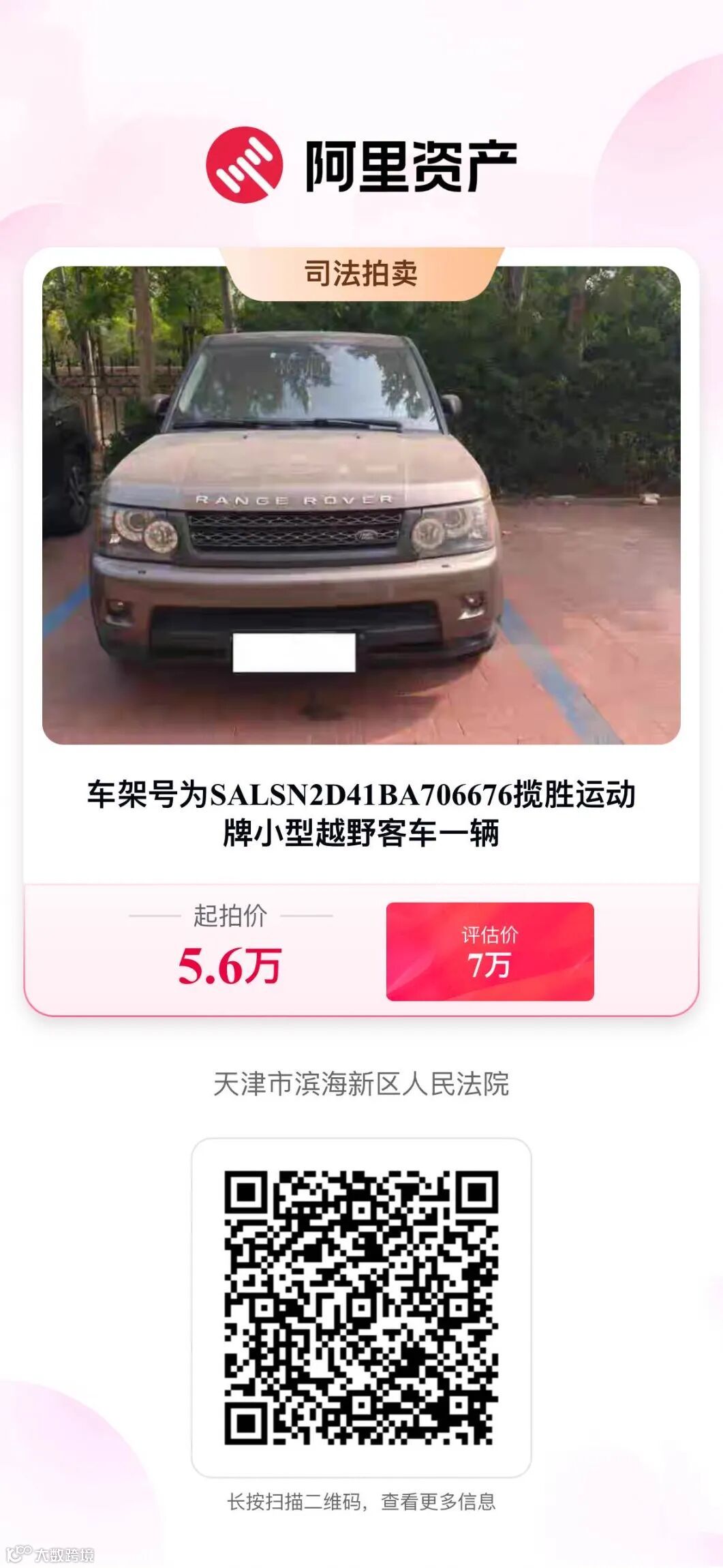 天津市滨海新区人民法院司法拍卖汇集系列优质拍品,含住宅用房、机动车辆,欢迎竞拍!更多优质拍品详见阿里拍卖——天津市滨海新区人民法院司法拍卖平台。