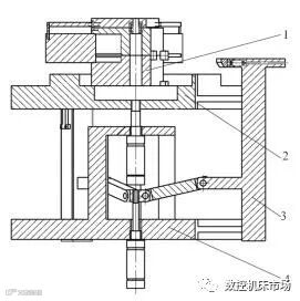 1—自定位装置 2—活动平台 3—夹紧爪 4—固定平台