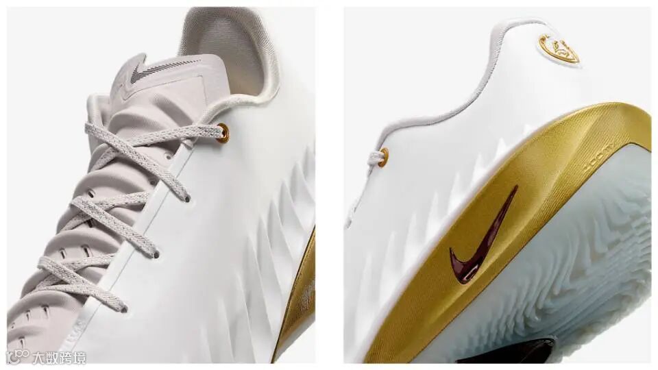时尚的 "外骨骼"鞋面呈现出未来主义风格,但又不失经典美感,既植根于 Nike 篮球传统,又致力于挑战比赛极限。鞋面外侧采用合成材料,前足及中足内侧采用轻盈织物。