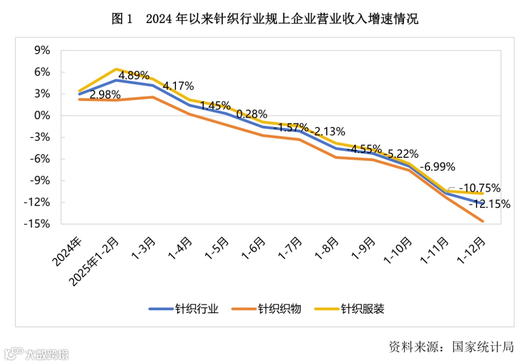 据中国海关数据统计,尽管受美国关税政策冲击等多种不利因素影响,但2025年我国针织产品出口1066.56亿美元,同比下降2.18%,在高基数背景下出现小幅下滑,连续5年超千亿美元。分品类来看,针织织物出口249.55亿美元,同比增长4.99%,保持稳健增长;针织服装及附件出口817亿美元,同比下降4.18%,成为拉低整体出口增速的主要因素。从月度累计增速走势看,2025年前8个月针织产品出口增速总体为正,自9月转为负增长,反映出国际市场需求的持续走弱和关税对全球供应链重构的深度影响。
