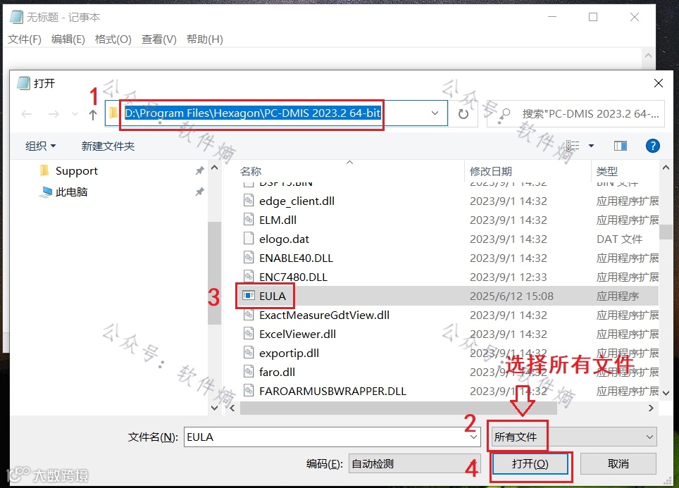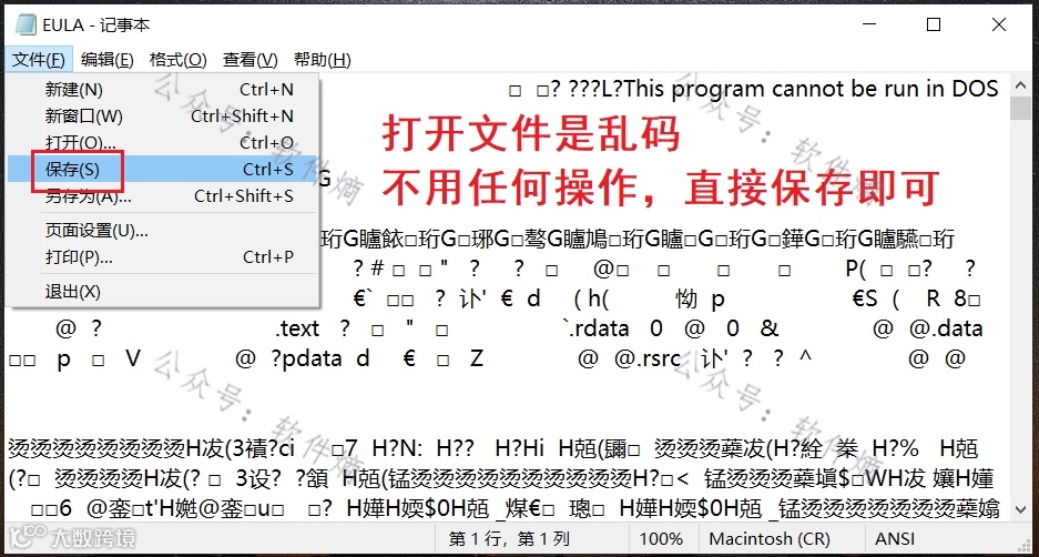 找到“EULA”文件,在桌面新建一个记事本,用记事本打开该文件并重新保存。