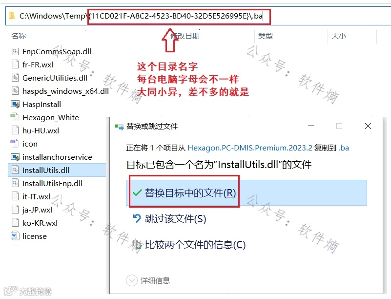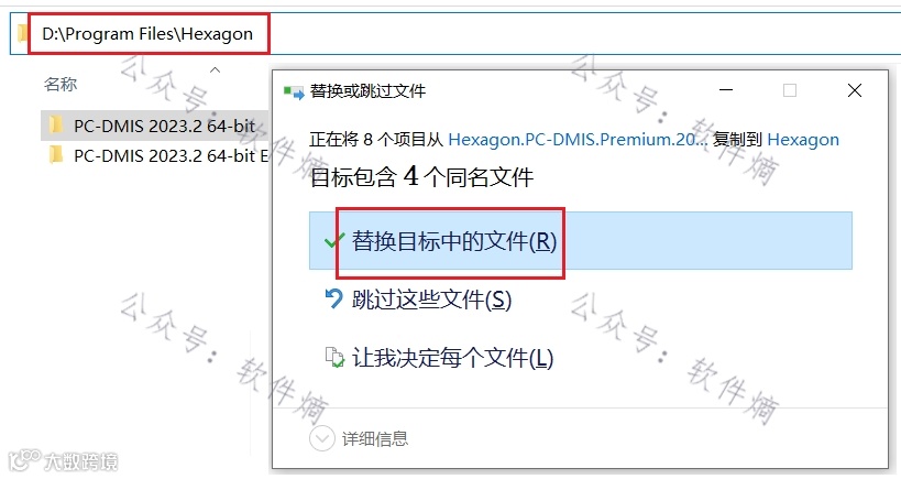 在打开的目录中返回“Hexagon”文件夹,将之前复制的“PC-DMIS 2023.2 64-bit”文件夹粘贴并替换。