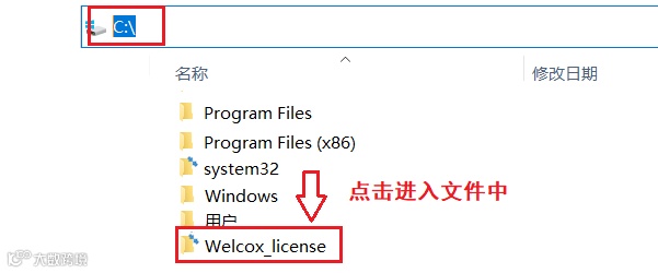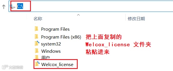 打开C盘下的“Welcox_license”文件夹。