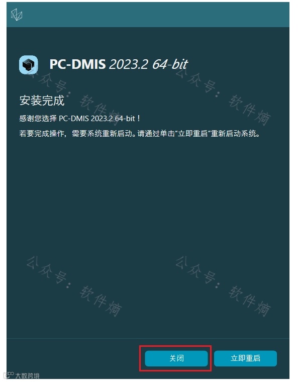 安装完成后点击“关闭”。