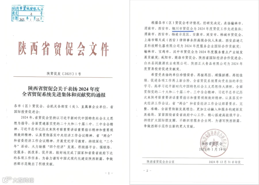 被陕西省贸促会评为2024年度贸促工作先进集体,在2025年全省贸促工作会议上交流发言