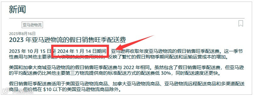亚马逊每年推出的“旺季配送费”在北京时间1月14日结束。从今天起,亚马逊将执行淡季的FBA配送费标准。