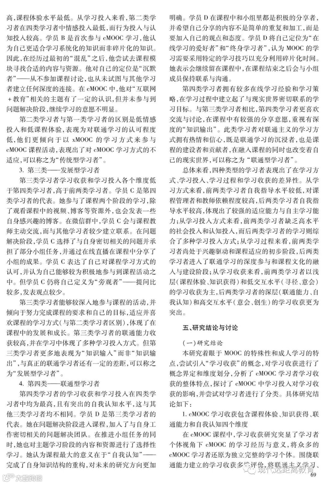 cMOOC学习收获及其与学习投入关系的研究