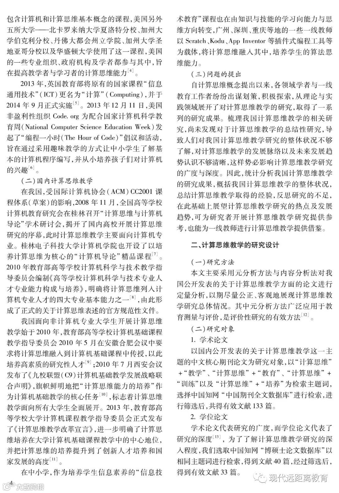 引文请注明:阳小华,刘志明,刘杰,等.我国计算思维教学的回顾与展望[J].现代远距离教育,2018(02):3-11.