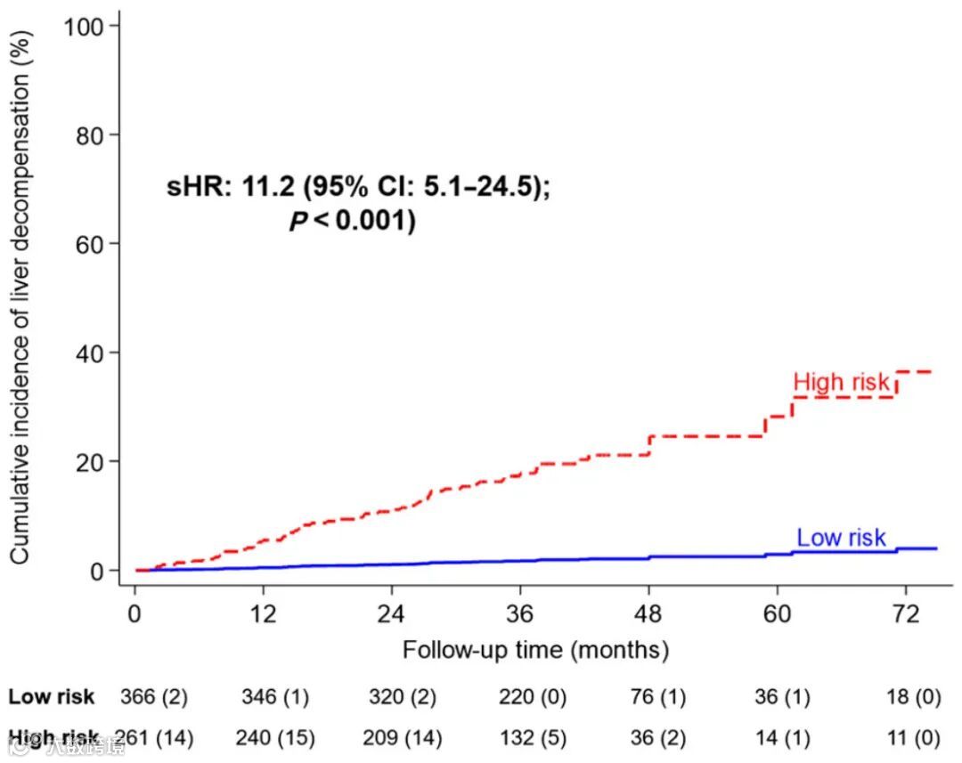 本项队列研究纳入来自新加坡、中国的633例代偿期肝硬化病例,中位随访3.25年,最长随访达8.5年。研究基于“年龄、性别、血小板和肝硬度”建立了新型CHESS-ALARM模型,相较既往提出的模型,CHESS-ALARM对失代偿事件具有更高的评估价值:预测3年失代偿、5年失代偿事件的时间依赖曲线下面积为0.84 (0.78-0.89)和0.86(0.79-0.94)。
