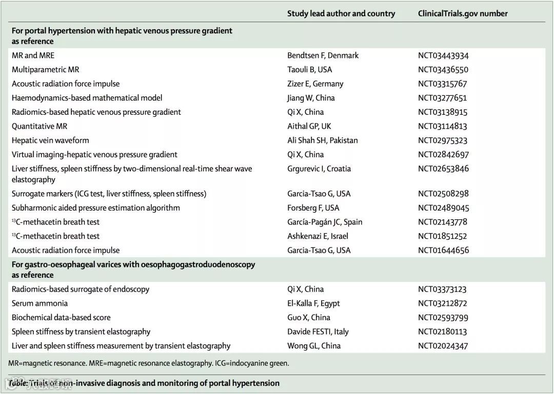 本文检索整理了ClinicalTrials.gov注册的门静脉高压临床诊断试验,其中我国CHESS牵头的系列前瞻性、多中心研究(NCT03138915/ NCT02842697/ NCT03373123)在国际该领域占据一席之地。
