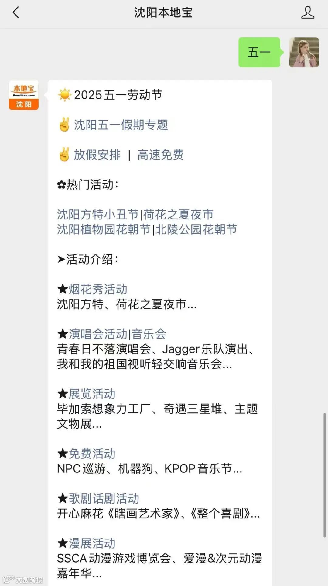 回复【五一】获取沈阳五一活动汇总和出游攻略