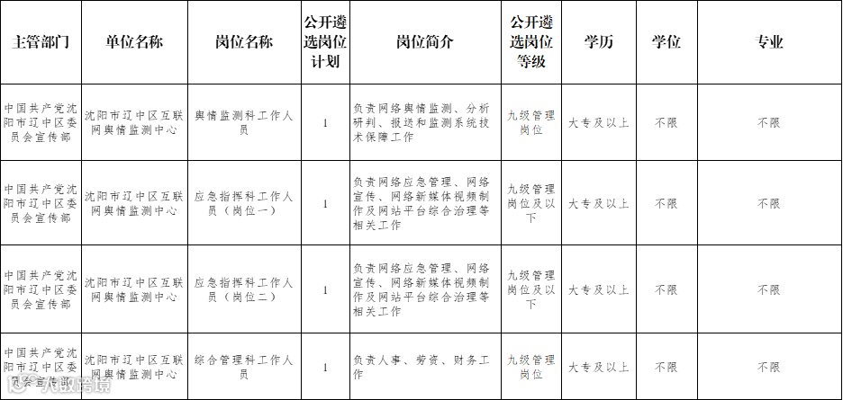 辽中区四家事业单位招聘