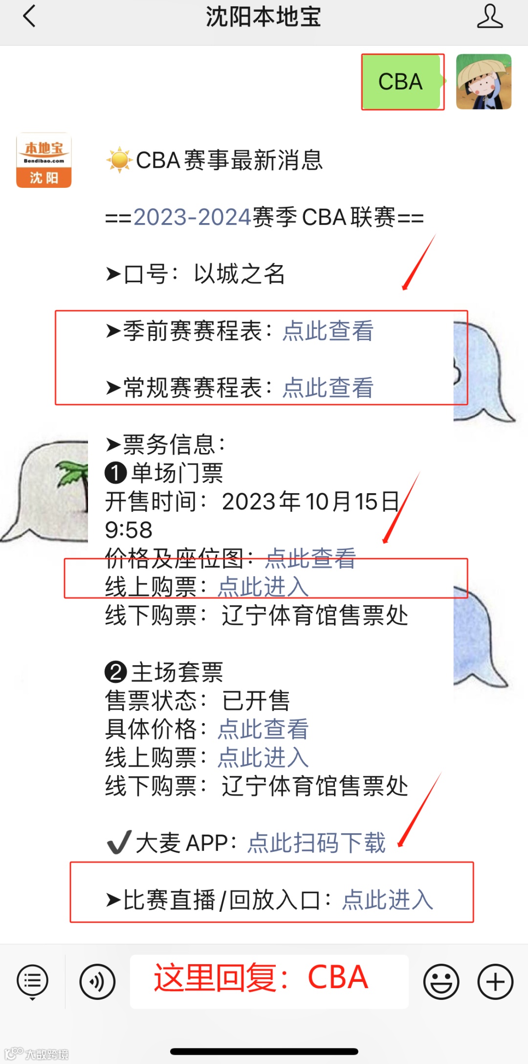 在对话框内回复CBA