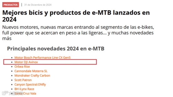 2024年最后一天,欧洲电动山地自行车媒体ESMTB发布《2024年推出的最佳自行车和e-MTB产品》榜单,其中大疆凭借电助力系统DJI Avinox成功跻身欧美主导的顶级eBike品牌圈,成为唯一上榜的中国企业。