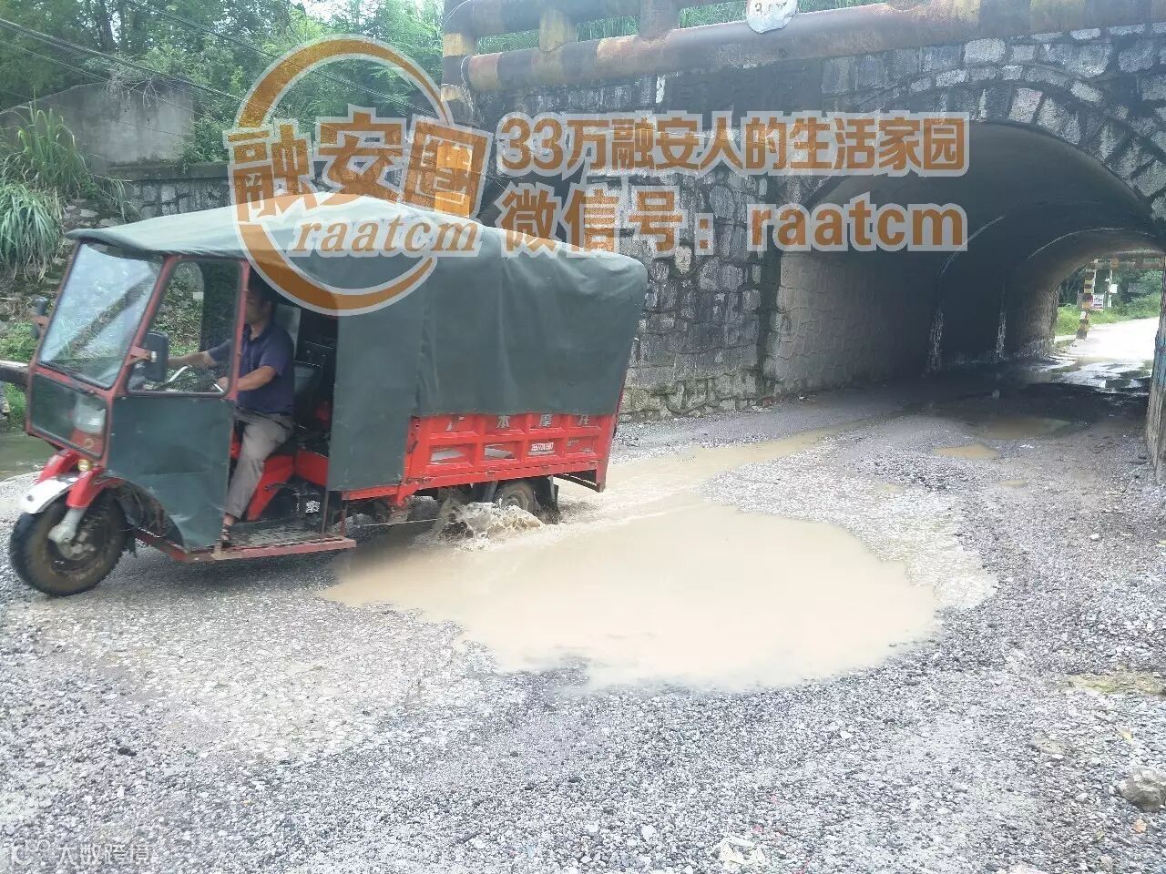 每年雨季,大家对这一段路的厌恶就更加强烈!这个涵洞口,每次下暴雨就会成为大水塘,比如去年7月份夏天雨季的时候,这个涵洞经常是这个样子的▼▼▼