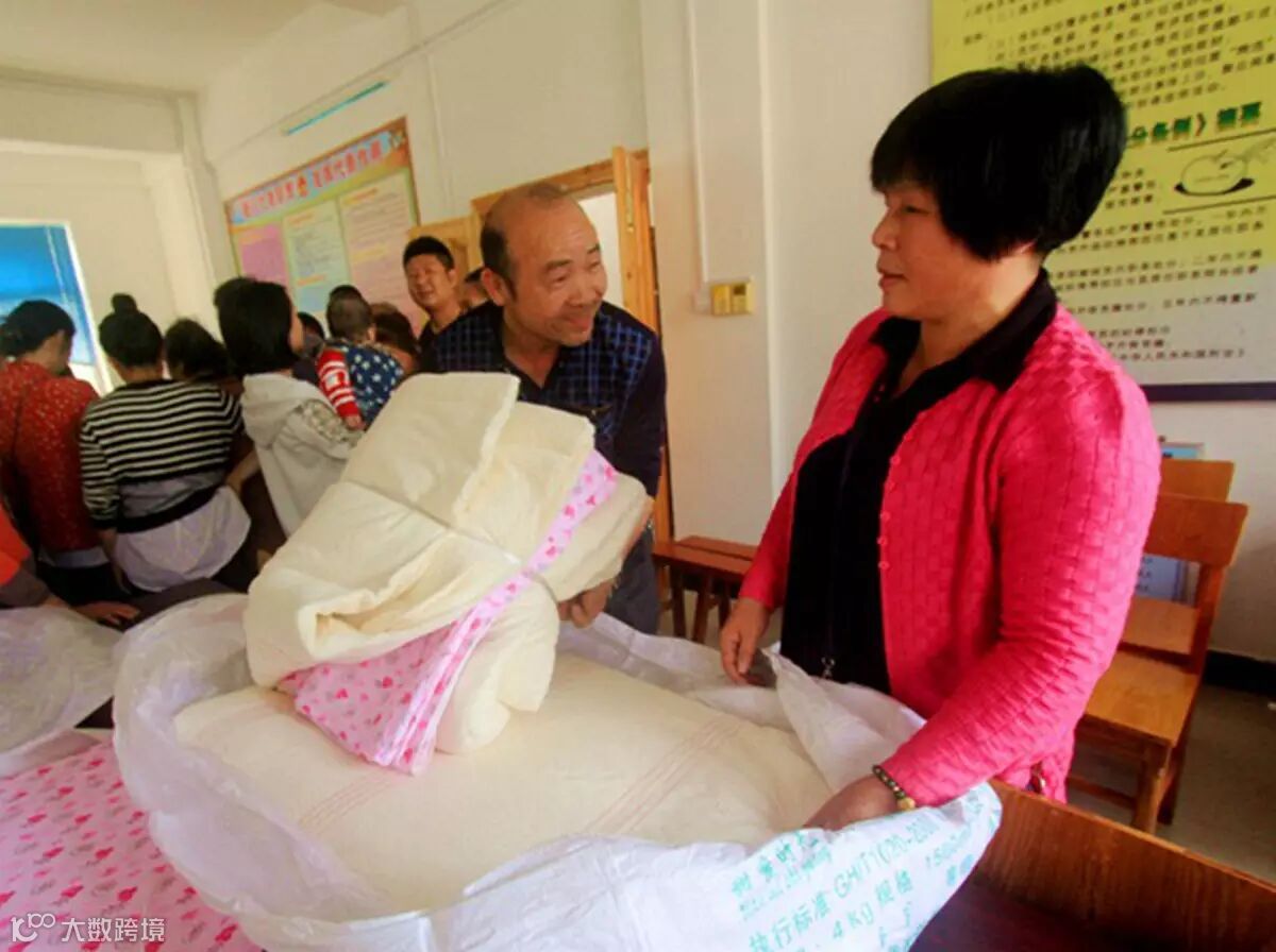 4月13日,在融安县长安镇新民社区,一名社区工作人员将一床新棉被发放给受灾群众。当日,融安县长安镇新民社区为受灾的社区困难户先行发放102床棉被。灾后,受灾的村屯和社区为受灾群众发放了应急生活用品,以解燃眉之急,稳定受灾群众的情绪。