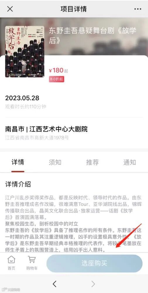 亲亲,请耐心等待一小会儿,千万别退出!等系统跳转至项目详情页面,即可选座购票