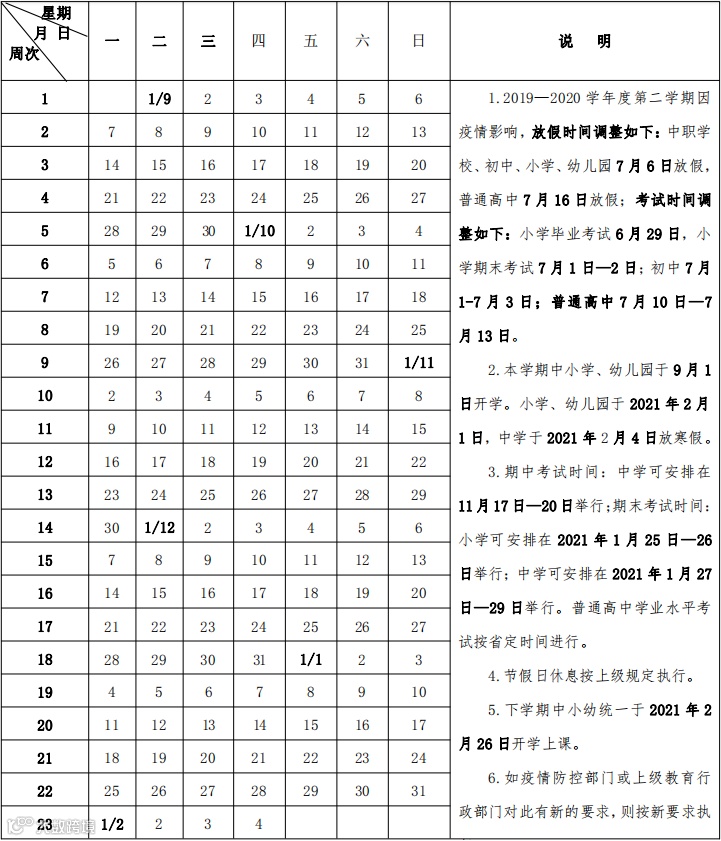 -----新学期校历表-----