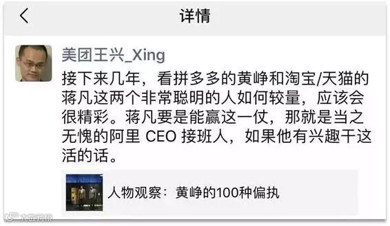 王兴却说,如果黄峥与蒋凡的较量,蒋凡获胜,他将是阿里CEO的不二人选。