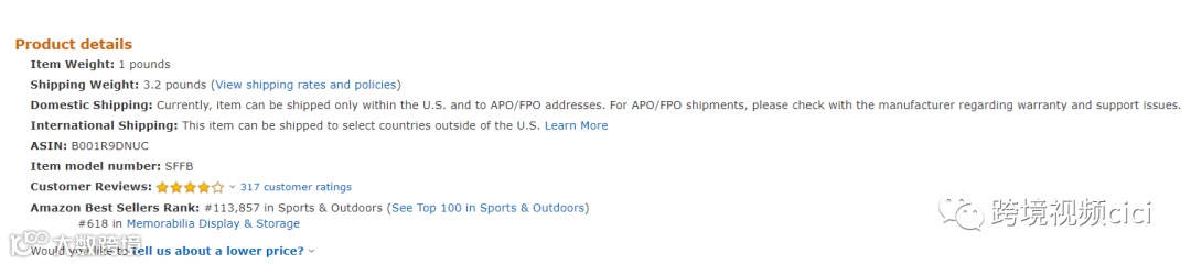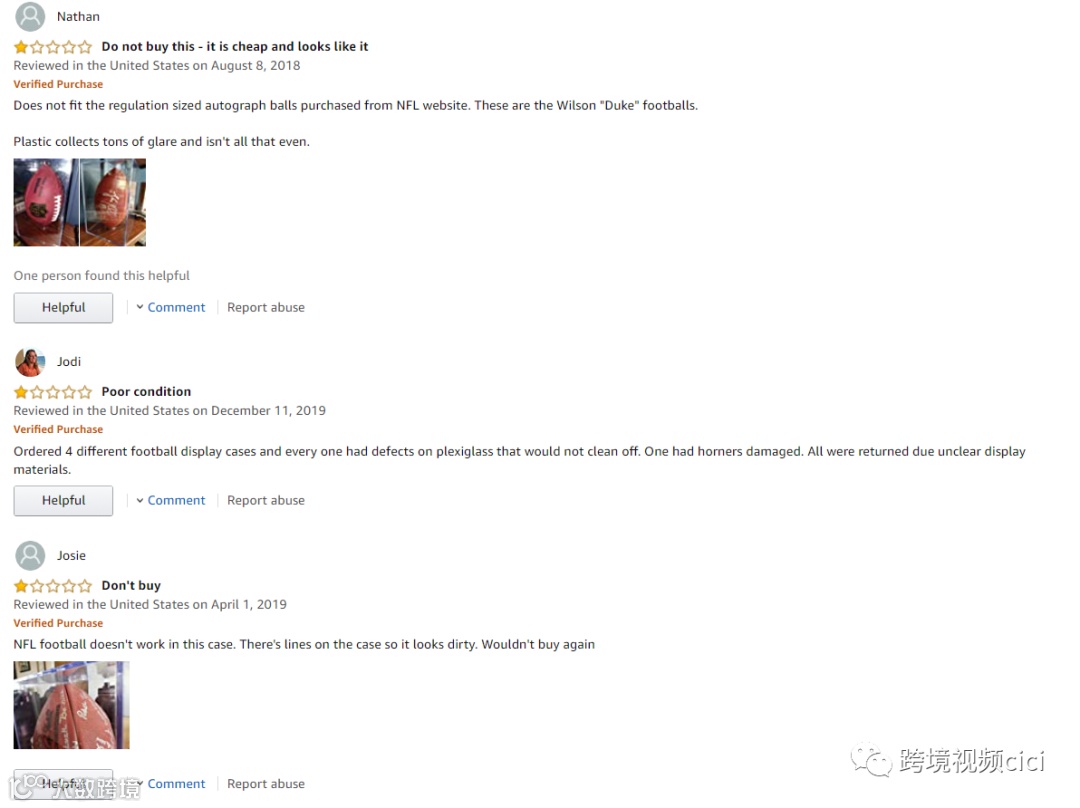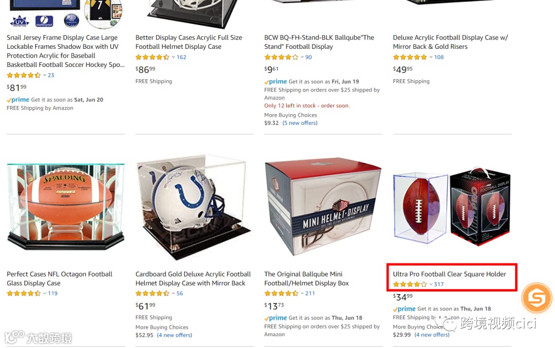 在亚马逊上搜索“足球展示柜”后,我们得到了一款产品“Ultra Pro Football Clear Square Holder”,获得了 4 星评级,这意味着即使客户对产品不完全满意,它也卖得很好。如果您销售类似产品,您将在改进现有产品的一些缺陷后获得成功。