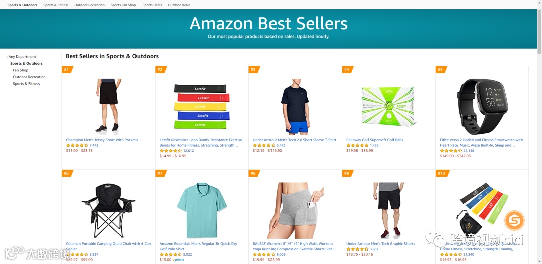 例如,下图是 Sports & Outdoors 的畅销商品。
