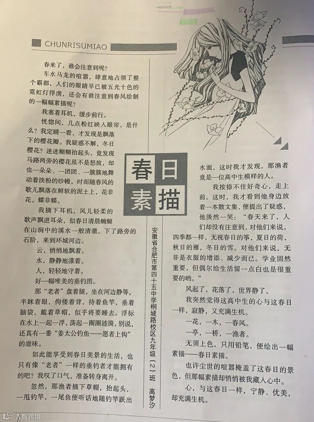 语言清隽,灵动,有春日气息弥散在文本当中,读完如置身这幅“素描”中,被作者营造的淡然、宁静的氛围感染得忘记今夕何夕。