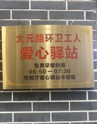 “太元路环卫工人爱心驿站”牌子