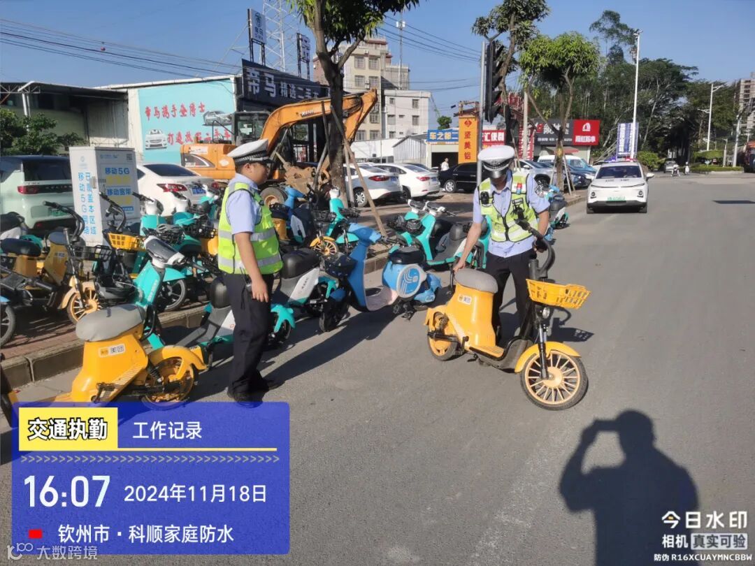 为进一步净化城市交通秩序环境,及时消除共享电动自行车潜在的交通安全隐患,防止运营企业无序超投,打造安全文明的出行环境,近日,钦州市公安局交警支队对主城区无牌、乱停乱放共享电动自行车进行集中整治。