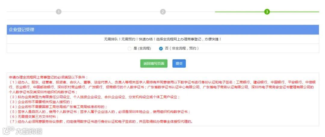 选择全流程或者预约方式办理