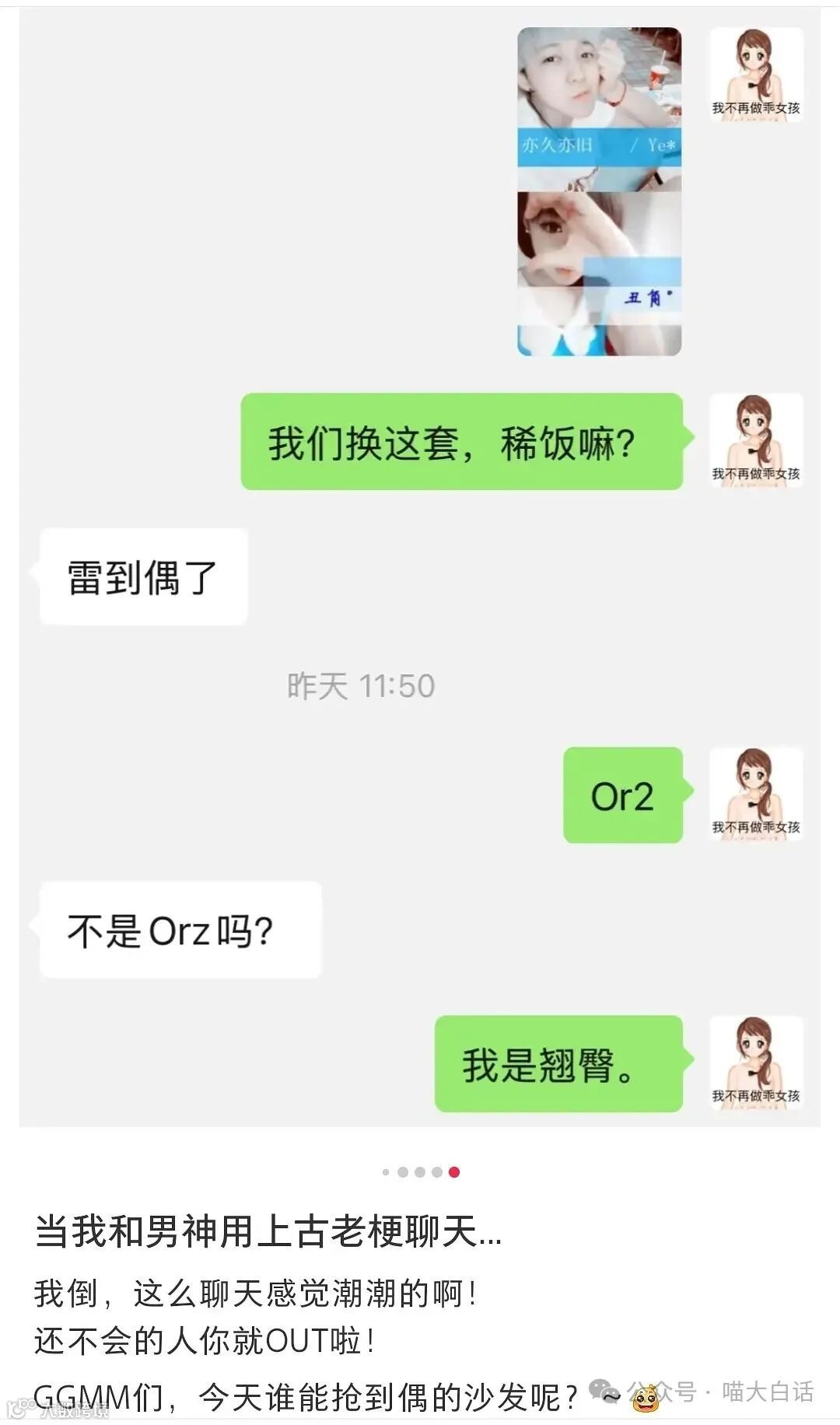 *作者:喵大白话(ID:jianmeow),一个明明可以靠颜值却非要靠才华,毒舌又暖心的段子手,掌握一手沙雕搞笑资源,熟知各种内涵有趣的骚套路,年轻人的聚集地,有趣的灵魂都在这里!图片素材来源网络,侵删。