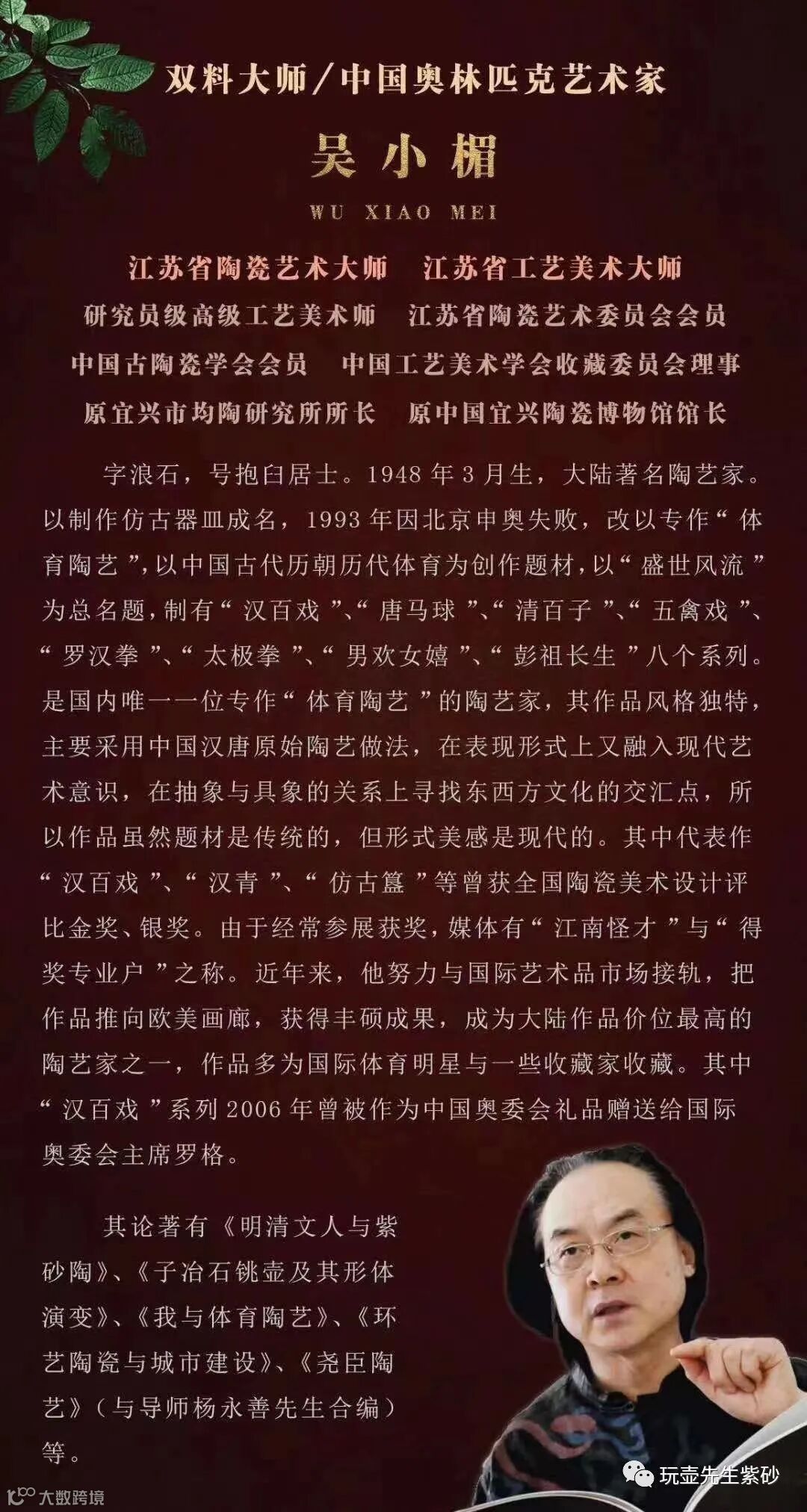 有那么一位紫砂匠人,他的创作,风靡世界,轰动历届奥运会,赞声如潮。他就是国内唯一一位从事“体育陶艺”的陶艺家——吴小楣。