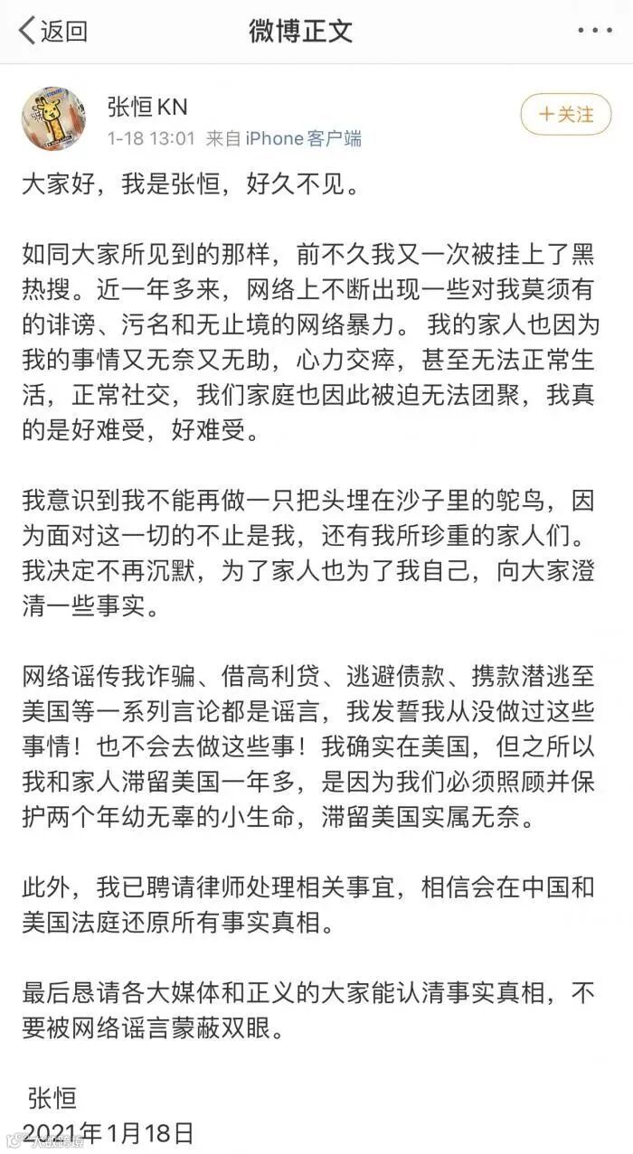 他先说了近一年被网络暴力,无法正常生活、正常社交。并且说了,自己滞留在美国,不是为了逃避债款,而是为了保护两个年幼无辜的小生命。