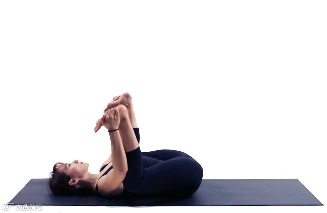 快乐婴儿式,需要你抬起双腿,曲膝,保持尾椎骨始终贴于在床上,双手抓住脚背外侧。向左右两侧轻轻摇动,持续30秒。