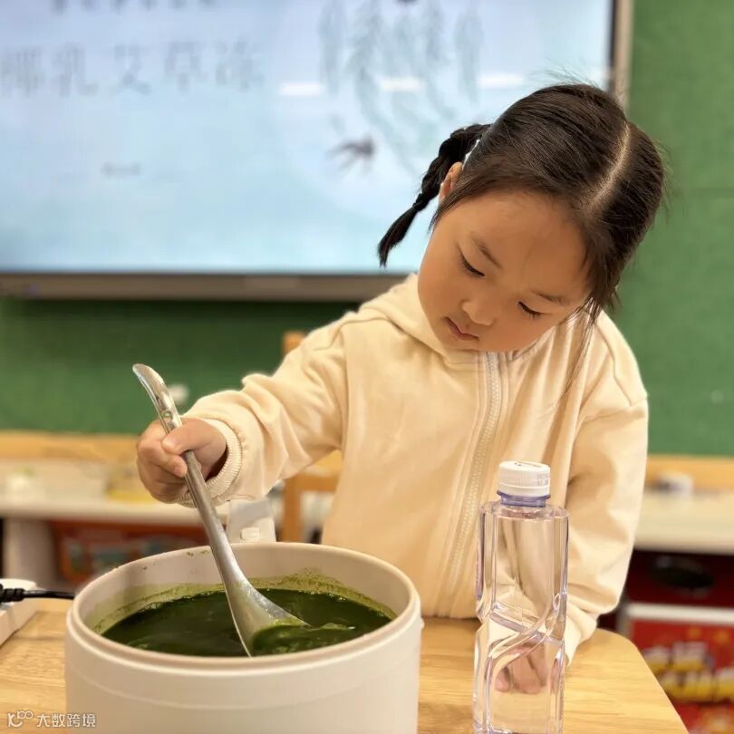 将QQ弹弹的艾草冻装进瓶子里,