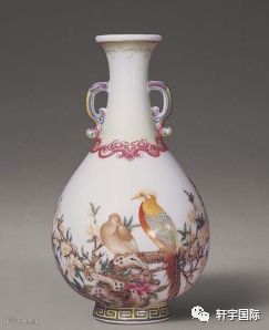 2005年,清乾隆御制珐琅彩“古月轩”题诗花石锦鸡图双耳瓶在香港苏富比秋拍上拍出1.22亿元