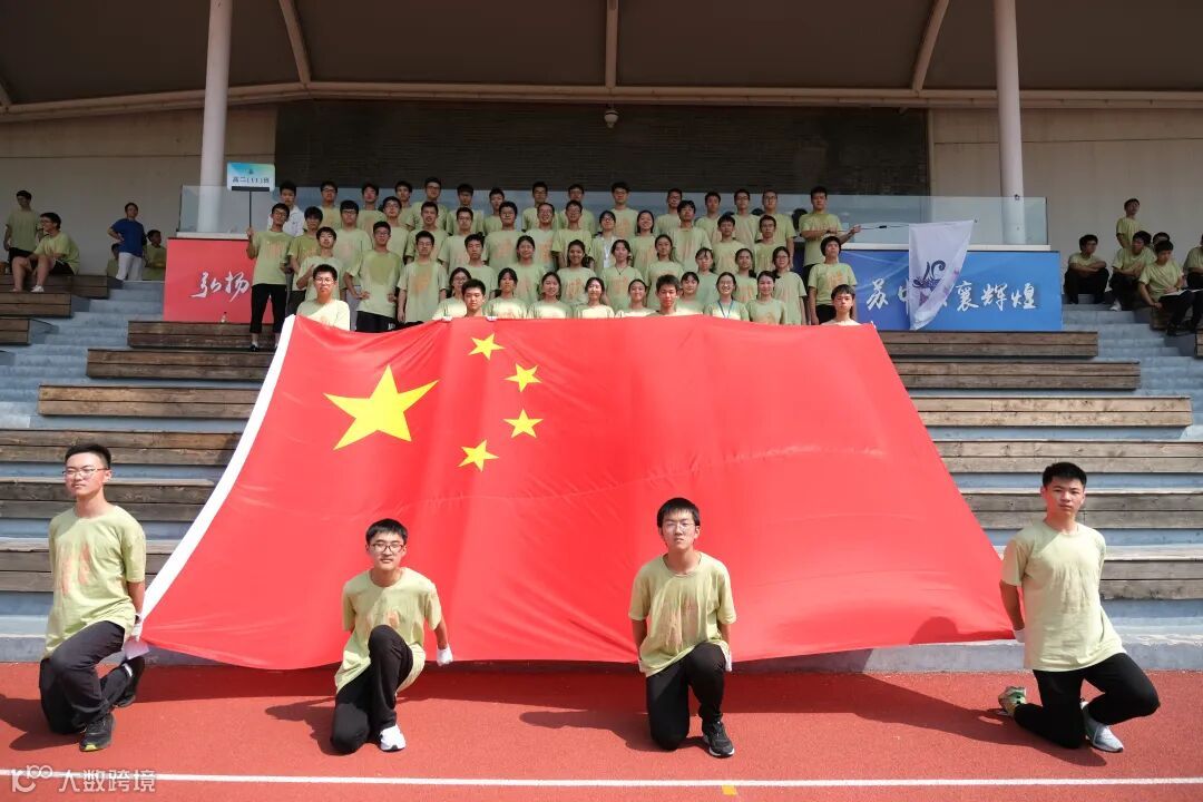 △无人机志愿者“星光搬运师”高二13班与国旗共合影