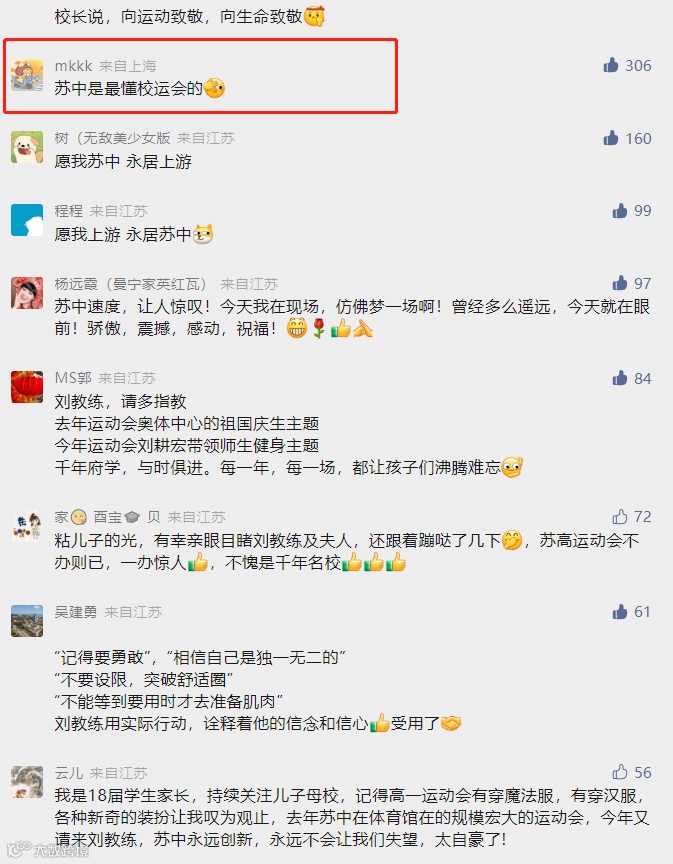 网友评论:苏州中学是最懂校运会的